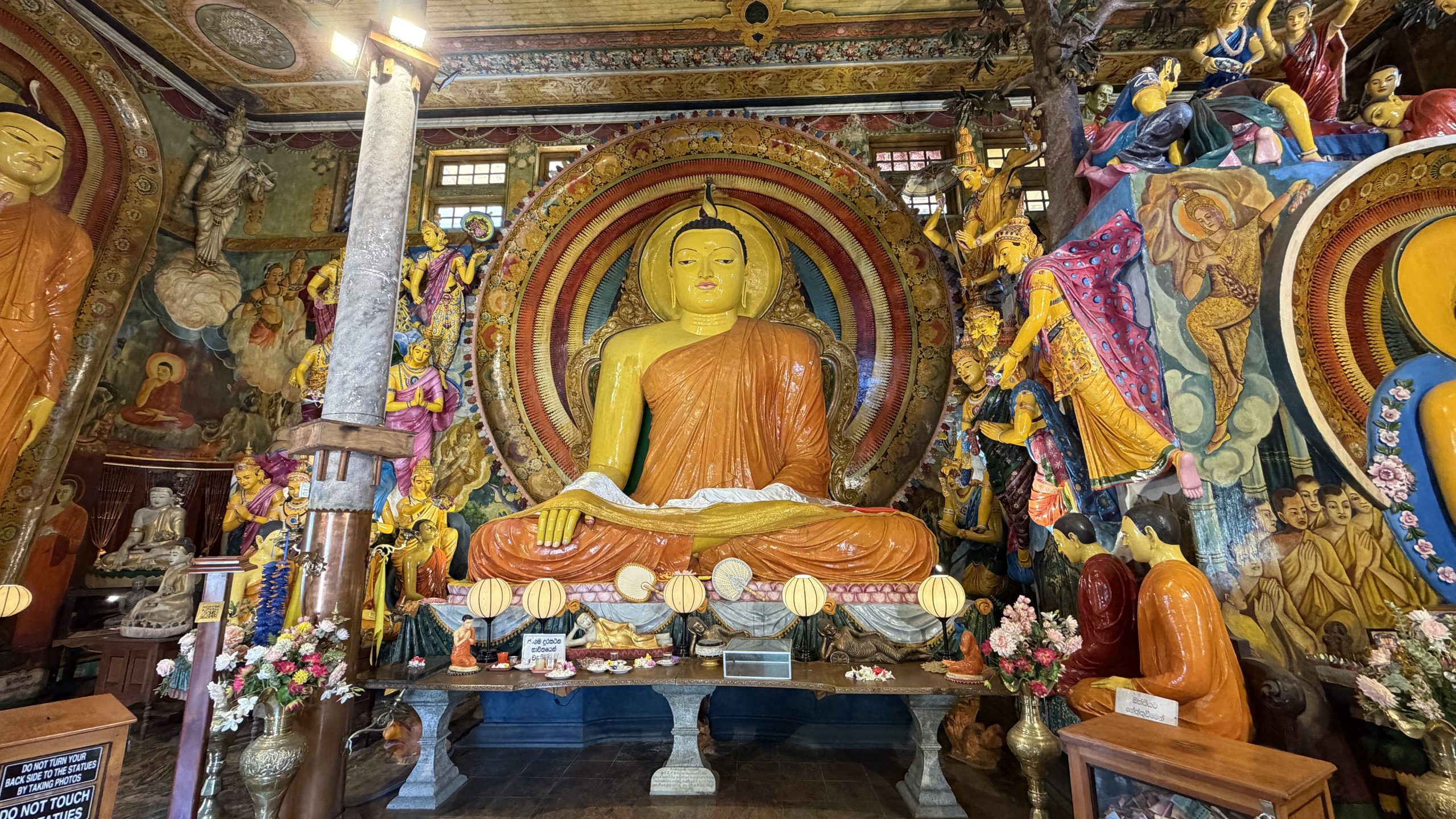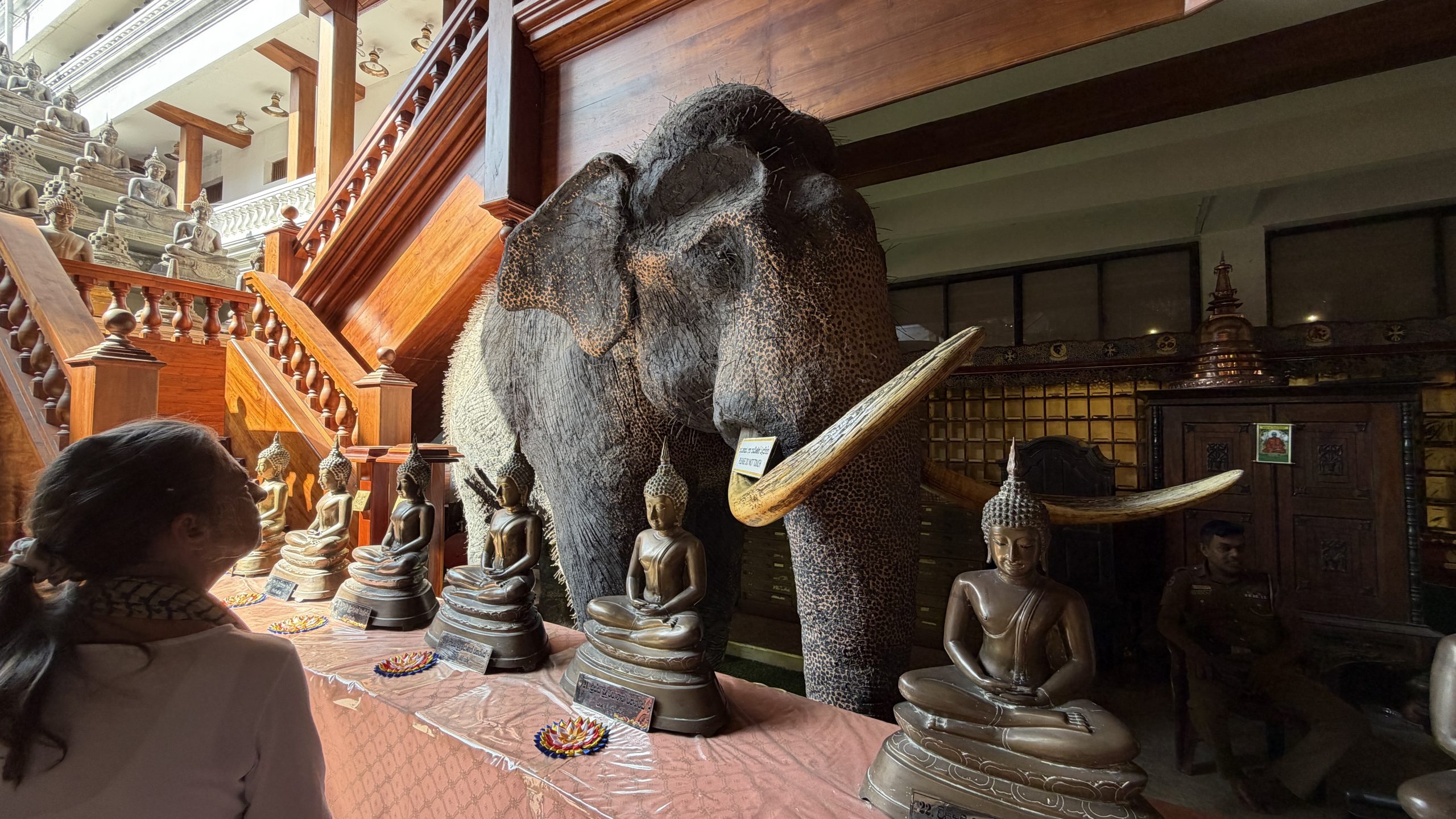 Die vorstehende Liste umfasst nun wirklich praktisch alle sehenswerten Punkte der Stadt. Als erstes steigen wir am Gangaramaya Temple aus. Das ist eine ziemlich große Anlage, in der heute noch aktiv „Lord Buddha“, wie unser Reiseführer sagt, angebetet wird. Daneben hat sich eine Art Museum etabliert, wo Reliquien, Bücher und Dinge des täglichen Lebens versammelt sind, die zum Teil schon etliche Jahrhunderte alt sind.