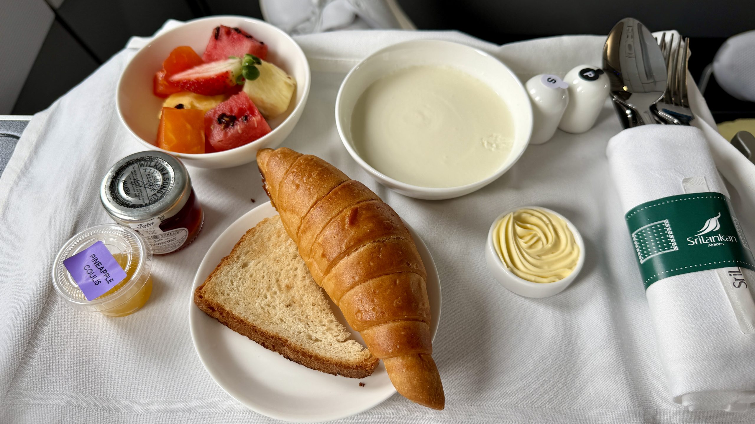 Leider ist jedoch die Lounge von SriLankan eher eine Enttäuschung: die Einrichtung ist lieblos ausgesucht; es drängt sich ein Vergleich zur viel zitierten Bahnhofshalle auf, nur mit Teppich und Polsterstühlen. Außerdem ist das Angebot nicht überwältigend, was angesichts der frühen Morgenstunde jedoch nicht weiter ins Gewicht fällt. Wir halten uns daher auch nicht zu lange hier auf, sondern nehmen den Sky Train zu unserem Gate, warten dort noch kurze Zeit und freuen uns auf den kurzen „Hopser“ von rund 2575 km nach Sri Lanka.